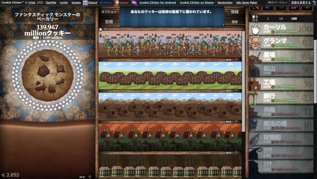 ひもすがら布団の中でCookie Clickerをしてました。