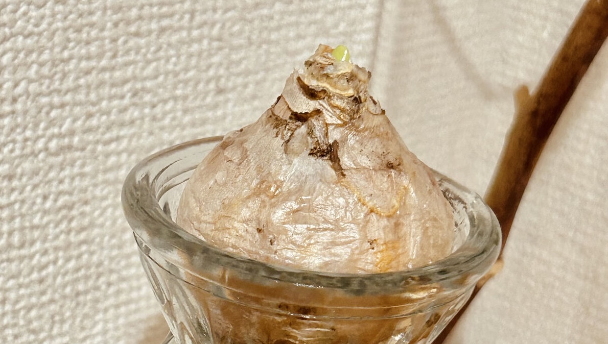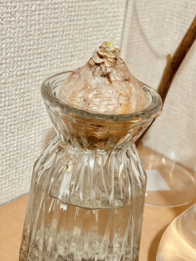 先週2025/11/18に水耕栽培を記事にしたヒヤシンスですが、なんと早くも発芽しました!