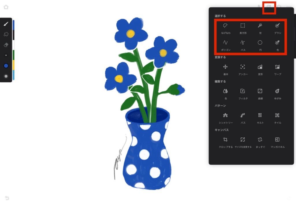 「選択する」のカテゴリー内の選択方法を選び、選択範囲を作成します。