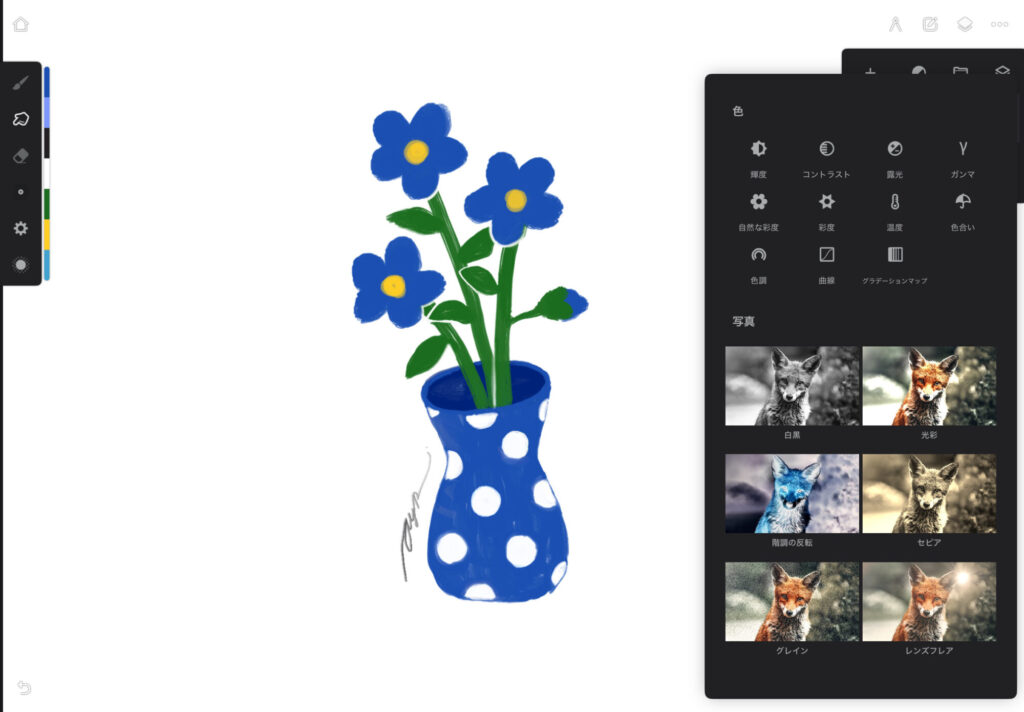 調整レイヤー機能まであるのはちょっと写真編集ソフトっぽいですね。
