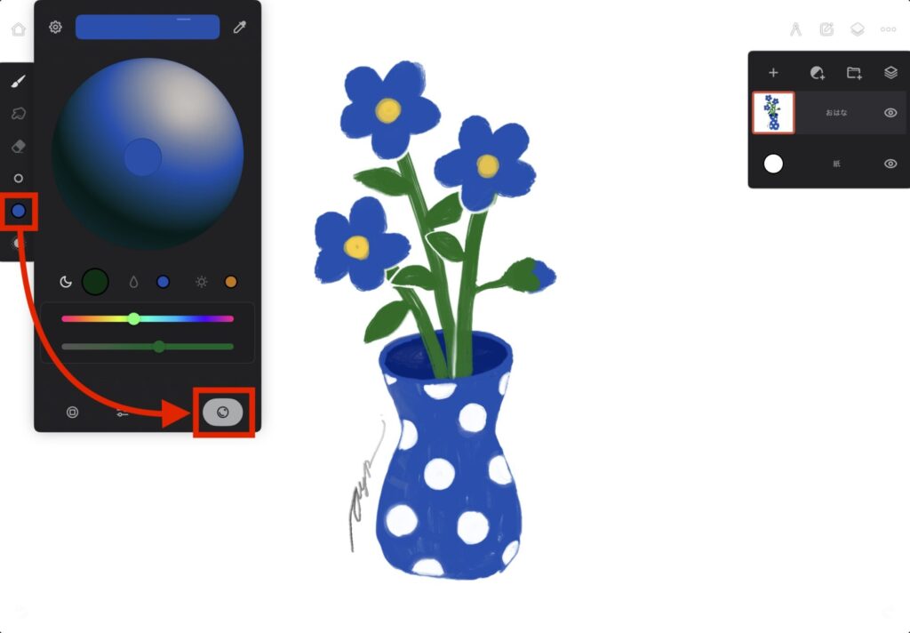 • スポイトを使うときには、色調整アイコンをドラッグ