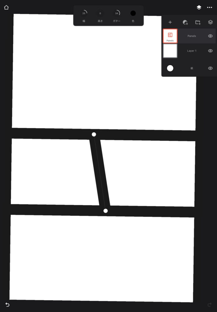 純粋にまっすぐな線を引いて画面を割っていく感じです。