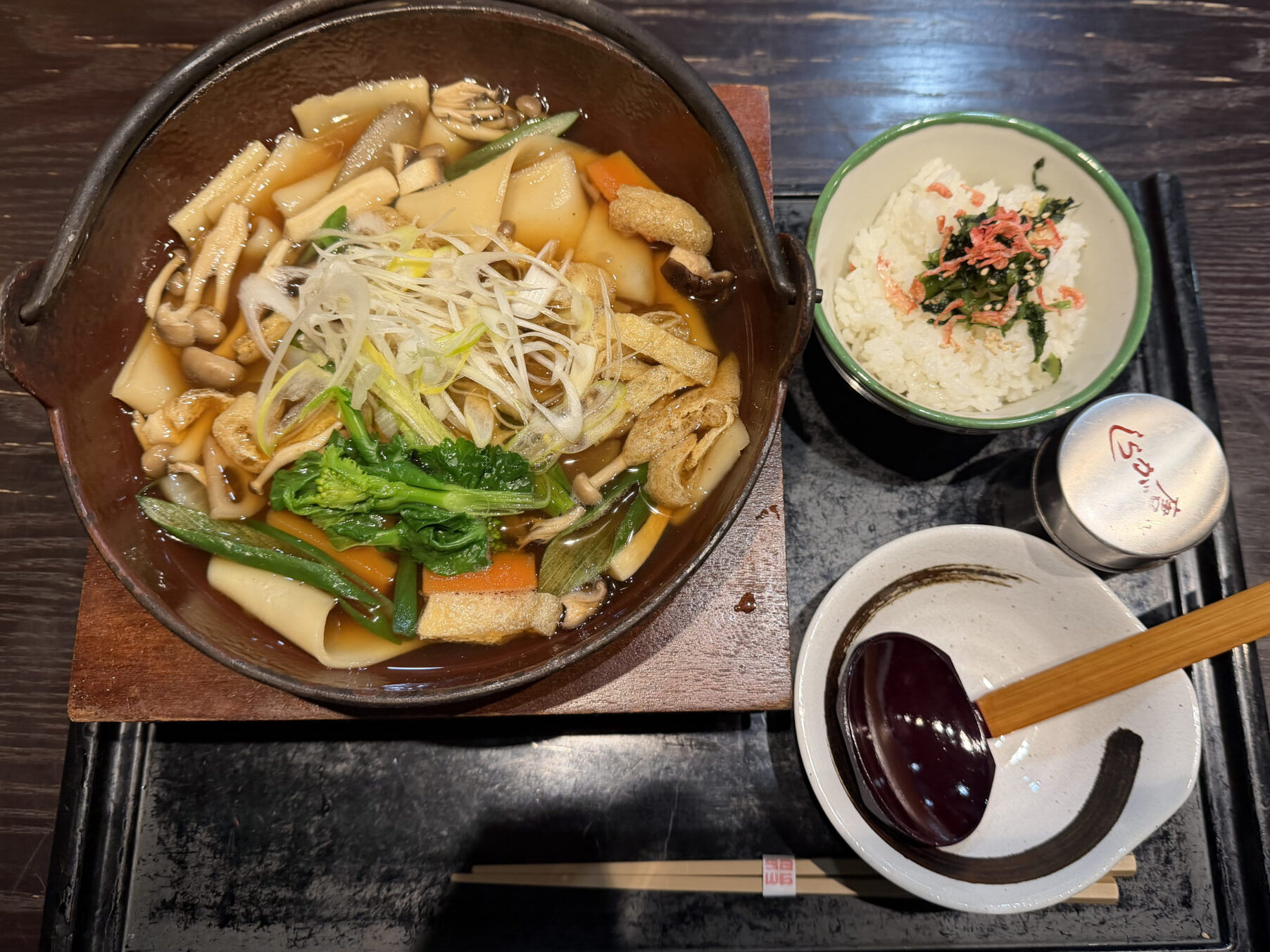 菜の花が入っていて季節感もあり、きのこやお野菜もたくさん入っていておいしかったです。